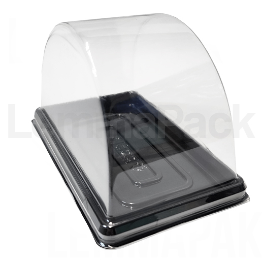 Купольная коробочка с прозрачным дном 138х85х81мм предназначена для упаковки порционного рулета.